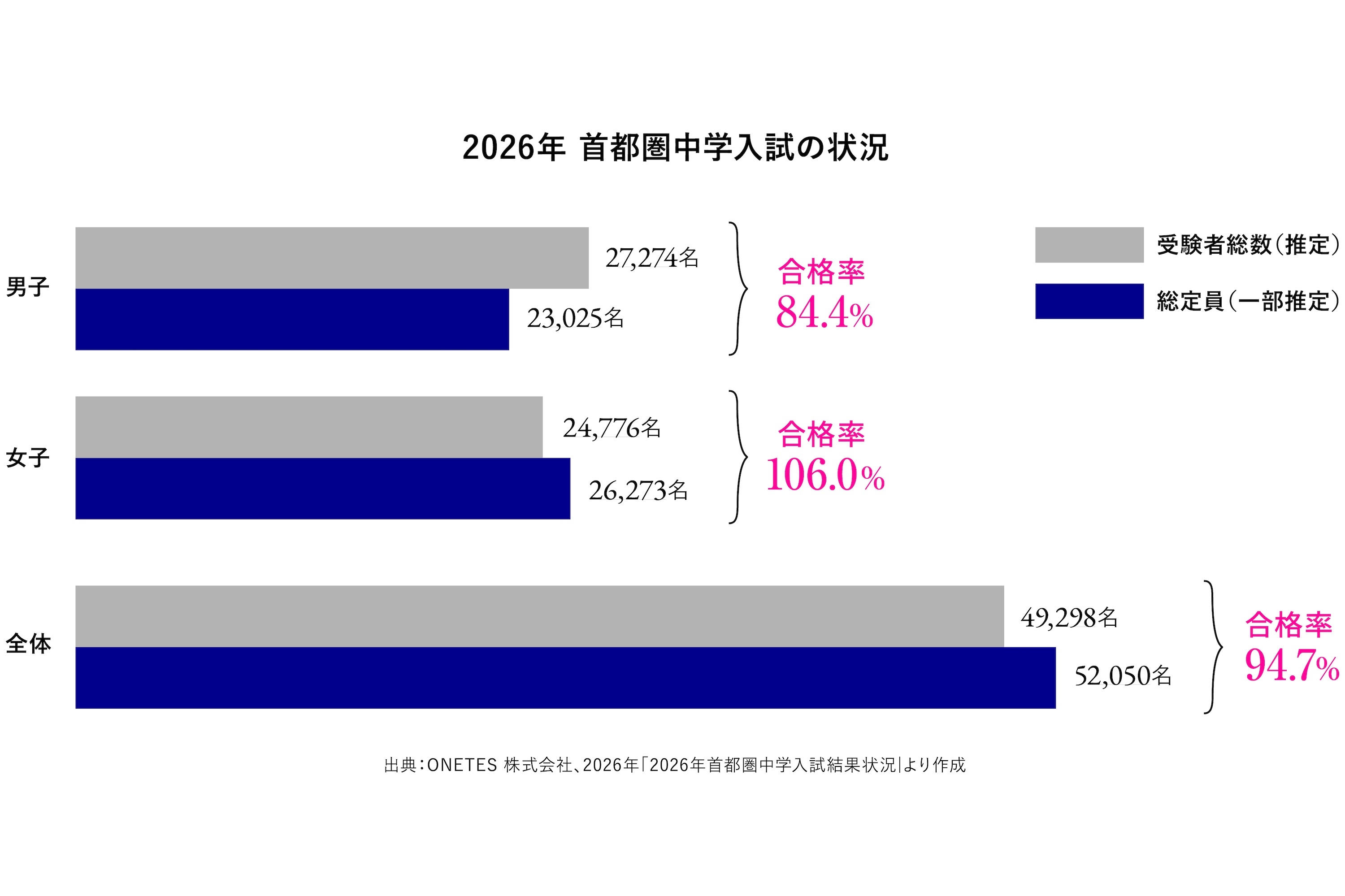 おおた:今、中学受験者総数と定員総数を見ると、椅子が足りない状態になってしまっているじゃないですか。どこにも入れない子が生まれるこの状況を、僕は良くないと思っています。2019年までは男女合計の合格率が100%を超えていた入試全入時代だったんですけどね。